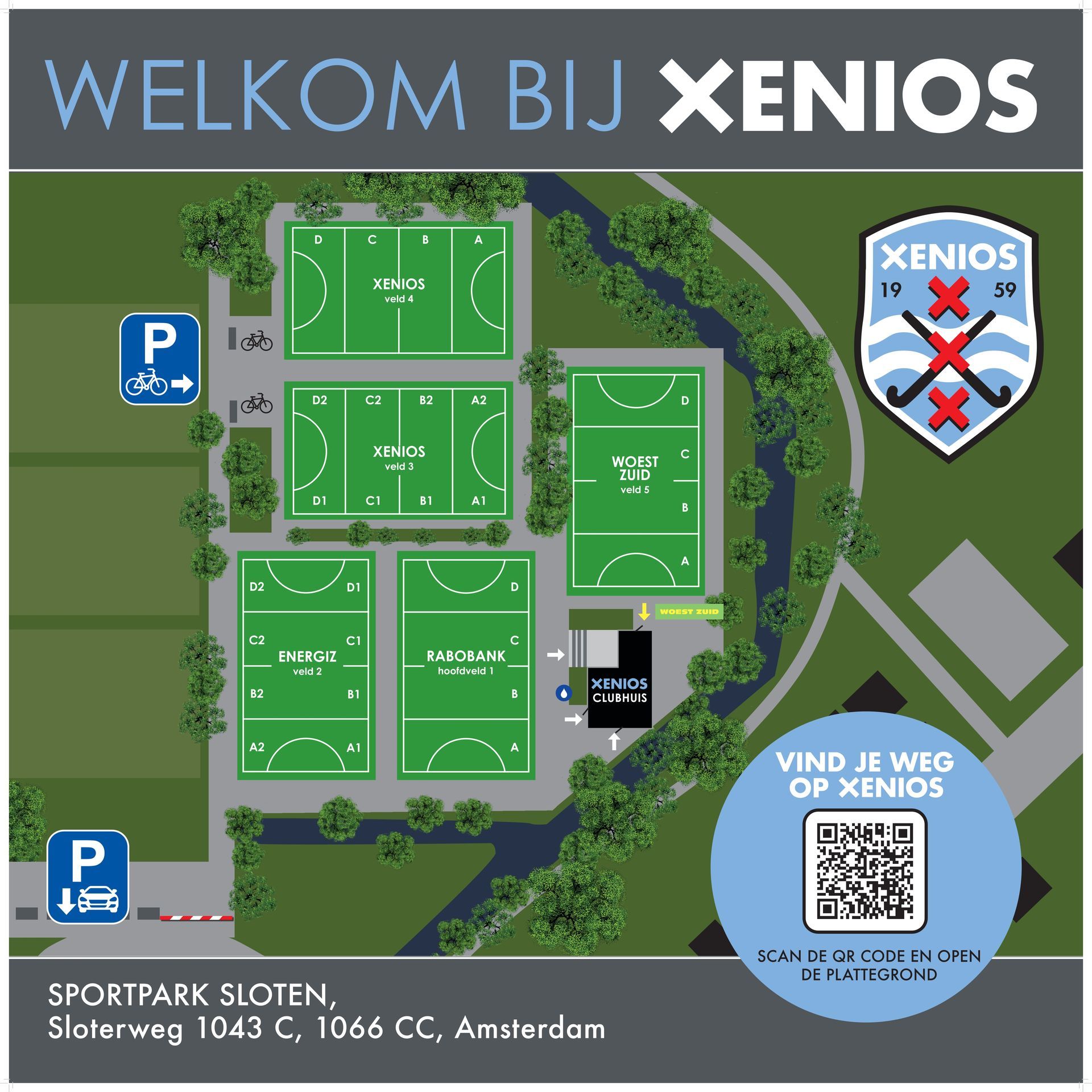 - Fietsen, scooters en bakfietsen parkeren in de stalling bij veld 3, en dus niet bij het clubhuis of naast je veld. Houd paden altijd vrij voor nooddiensten.